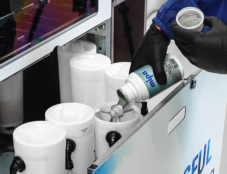 La Mipa Abtönautomat CR 6 di Mipa stabilisce nuovi standard grazie alla tecnologia di dosaggio volumetrico. Ciò consente di ottenere miscele estremamente precise a partire da una quantità di 0,0077 ml, il che è particolarmente vantaggioso nel campo delle riparazioni localizzate. Poiché la macchina miscelatrice automatica funziona indipendentemente da una bilancia, consente di risparmiare tempo prezioso durante il dosaggio. Il risparmio di tempo è ancora più evidente quando il controllo dell'applicazione viene effettuato comodamente da una postazione di lavoro in ufficio. Sul display della macchina viene quindi visualizzato un elenco di lavori che deve solo essere confermato. Le etichette stampate vengono poi incollate sui bicchieri di miscelazione, che vengono riempiti in modo completamente automatico. Il design ergonomico e salvaspazio facilita la manipolazione e consente uno svuotamento quasi completo dei contenitori di argilla. Anche la versione più compatta, la Mipa Abtönautomat CR 4, garantisce la massima precisione di dosaggio e sicurezza di processo.