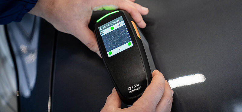 Un altro elemento fondamentale dello Smart Mixing System è il nuovo colorimetro X-Rite MA 5C. Questo moderno dispositivo multiangolare con fotocamera integrata rileva i dati relativi al colore e alla struttura in un unico passaggio. Veloce, preciso e intuitivo, fornisce la base per ricette di miscelazione accurate, che vengono create direttamente tramite il software MipaMix Elite. L'interazione tra misuratore, software e macchina garantisce la massima sicurezza di processo e risultati perfetti.